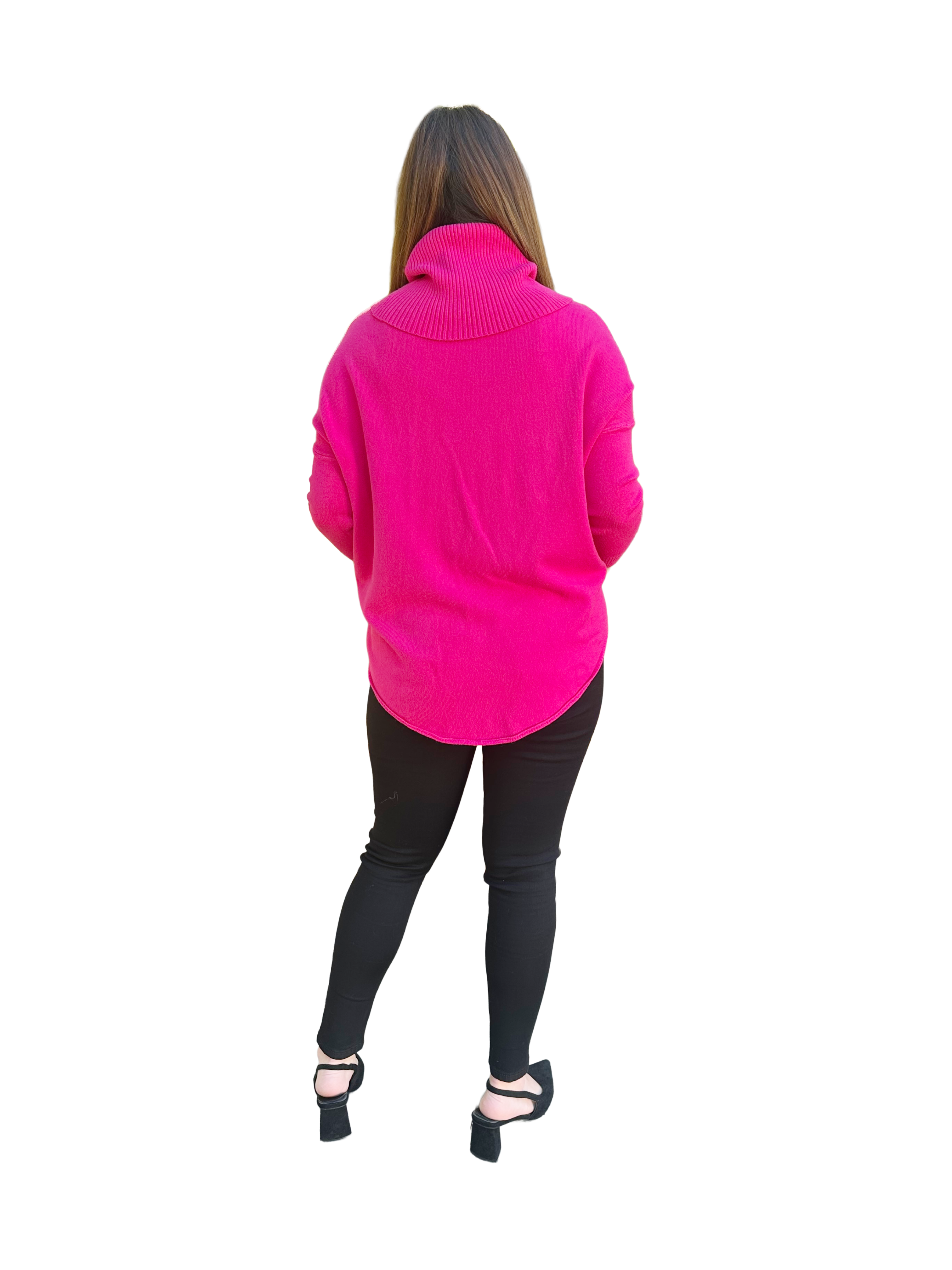 Este sweater es un lujo. Es sumamente versátil. Tiene el cuello alto que podrás acomodar en la forma que desees y de esa forma se verá como si fueran diferentes chalecos! También lo puedes usar con o sin cinturón! . La parte posterior es más larga que la anterior y la terminación del puño es ajustado. Este es uno de nuestros favoritos de esta temporada! Está disponible en varios tonos para que puedas elegir.